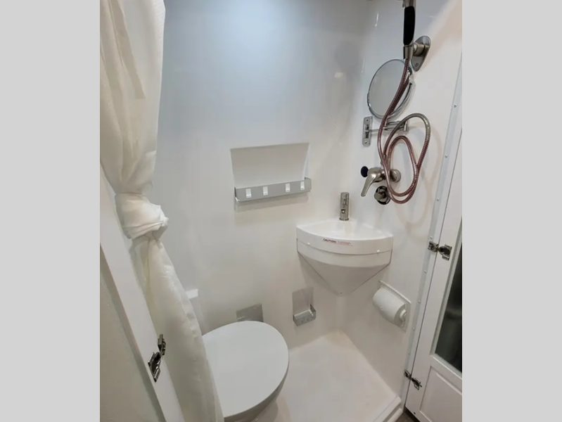 The interior will have you feeling right at home with hardwood cabinetry, an induction cooktop, plus a MaxxAir fan with a rain sensor and remote for added convenience. All of your power needs will be met with the RV QG 800i 2.8kW gas generator and the 195-watt solar panel with dual charging capabilities, or you can choose the optional Li3 Lithium battery system for unmatched power.