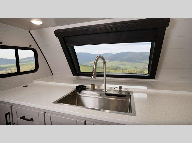 You will love the seamless countertops throughout, along with the stylish interior and the new InVision appliance package. A 13,500 BTU roof.mounted Quiet Series A/C will keep you comfortable, while the MaxxAir vent fan in bathroom and living room allows for even more comfort, and the on-demand water heater means everyone can freshen up before bed. Each model is constructed with a Magnum Truss roof system and Stronghold VBL walls with double-sided Azdel composite, so you can plan to enjoy your Jay Feather for years to come.